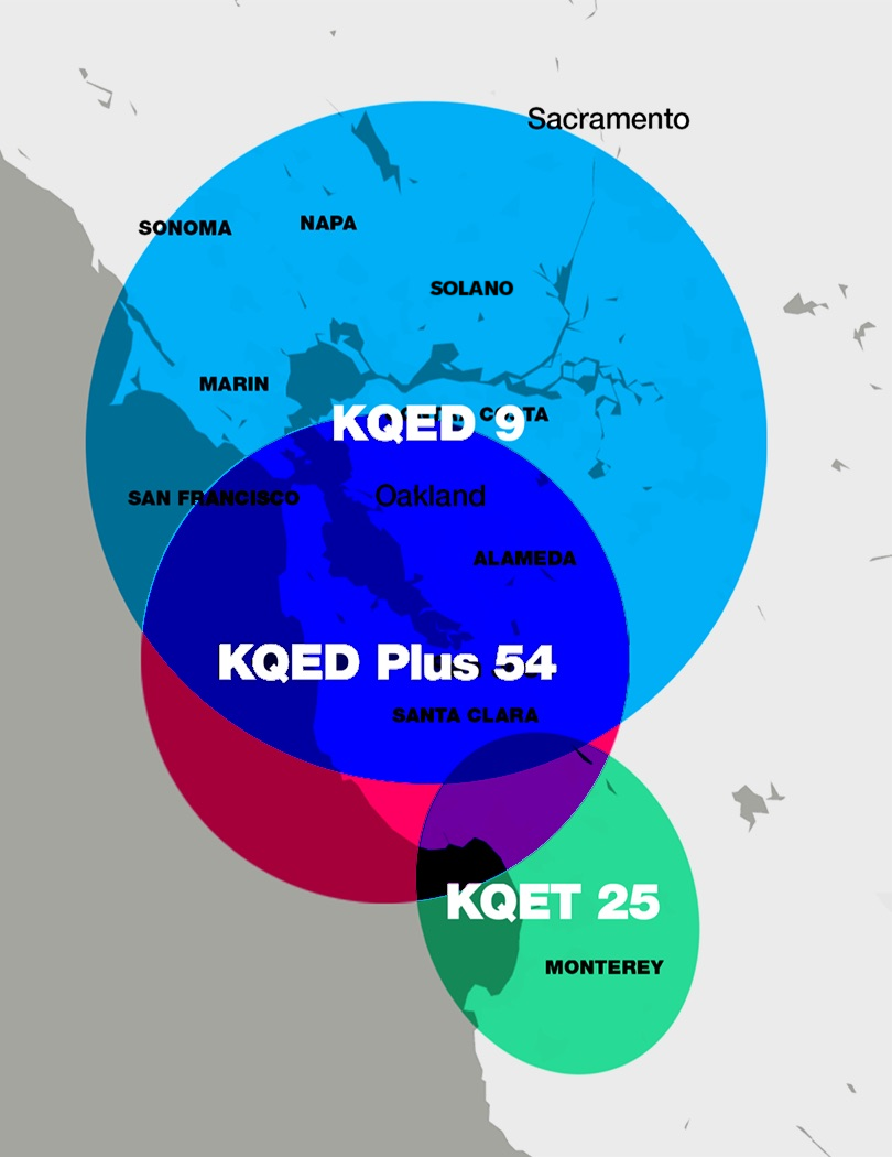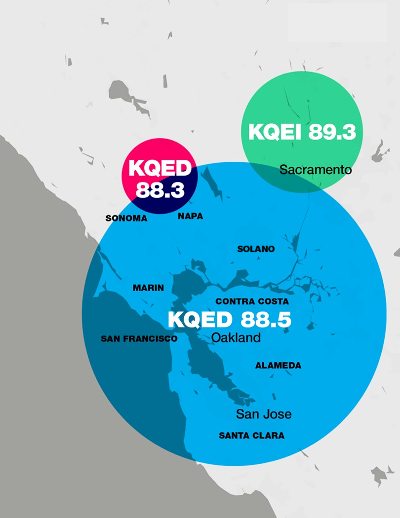 Note: KQED 88.3 FM and KQEI 89.3 FM are simulcasts of KQED 88.5 FM