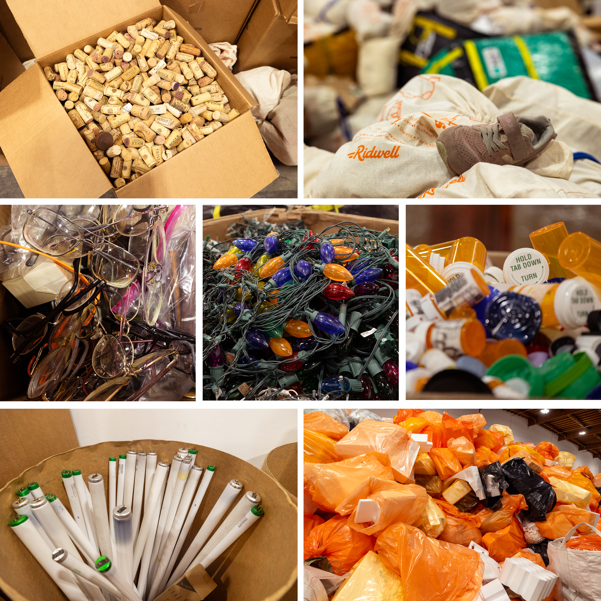 Some of the items collected and sorted at the Ridwell processing plant in San Leandro. (David M. Barreda/KQED)